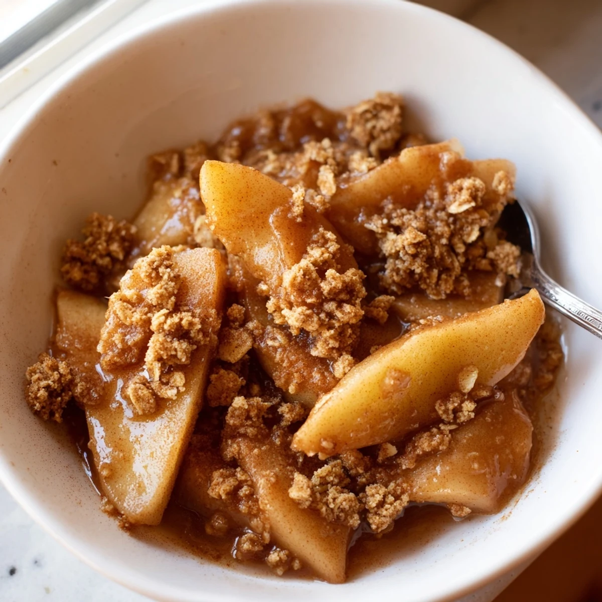 This slow cooker dessert combines fresh sliced apples with warming spices like cinnamon and nutmeg, topped with a crumbly mixture of oats, flour, brown sugar, and cold butter. The gentle heat transforms the fruit into tender, fragrant goodness while creating a crisp, golden topping that contrasts beautifully with the soft fruit beneath.