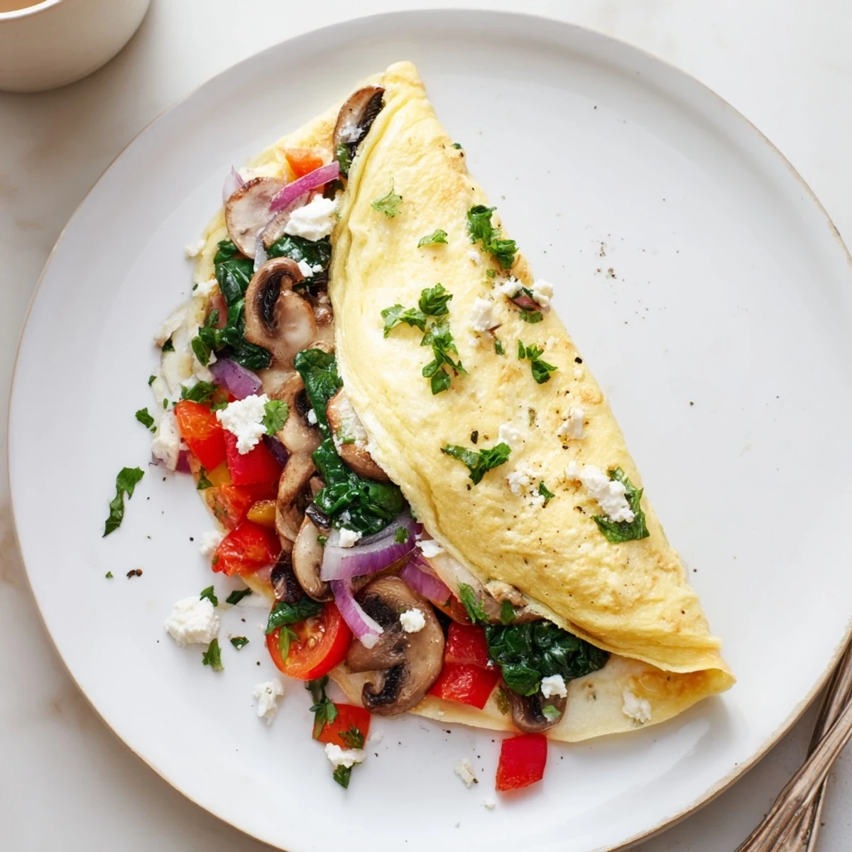 Some mornings I raid the fridge for odds and ends: leftover roasted broccoli, a slice of cooked zucchini, or a pinch of fresh herbs. This omelette adapts beautifully to whatever you add, so don’t stress over exact quantities or perfect cuts — the more colorful, the better.