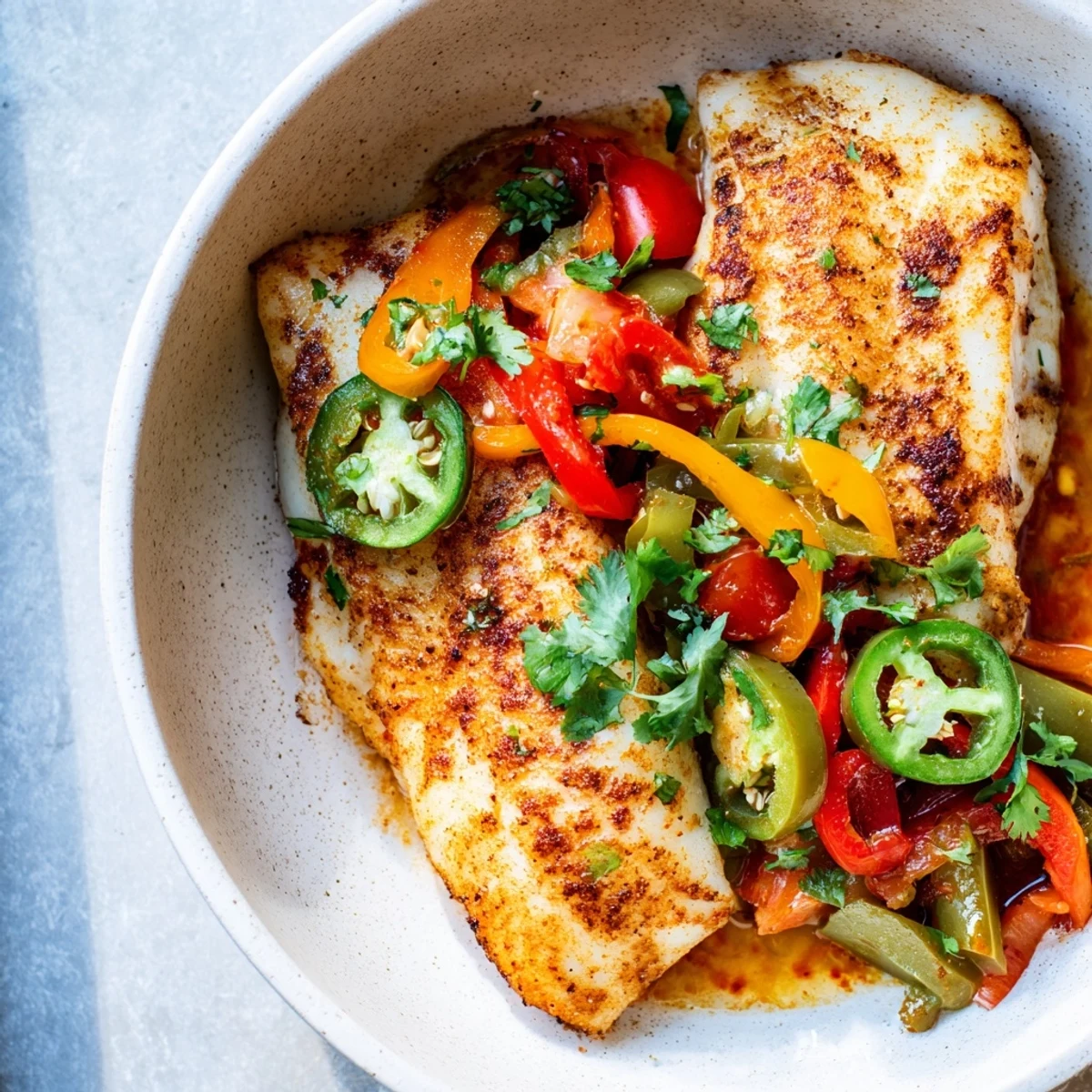 This vibrant skillet combines tender tilapia with a medley of roasted red and yellow peppers, spiked with jalapeño and aromatic spices. The fish sears to golden perfection before simmering in a smoky, tomato-based sauce infused with smoked paprika, cumin, and chili flakes. A finish of fresh lime juice and cilantro adds brightness to this bold, gluten-free dish that comes together in just over half an hour.