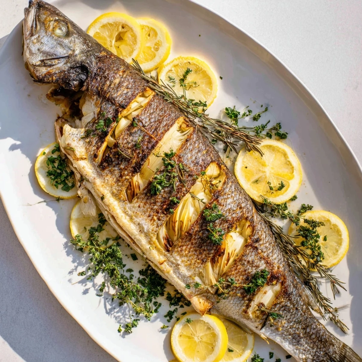 The first time I brought home a whole fish from the market, I stared at it on the counter for twenty minutes, feeling completely intimidated by those silvery eyes and knowing I had to cook something that still looked unmistakably like itself. My grandmother had made whole roasted fish seem effortless, but watching her as a child and standing in my own kitchen with a sea bass staring back at me were entirely different experiences. That evening, I just went for it, and the moment I pulled that fish from the oven with skin crackling like potato chips and the kitchen smelling of lemon and thyme, I understood why this preparation has endured across generations. Now it is my go-to when I want to make dinner feel like an occasion without actually doing anything complicated.
